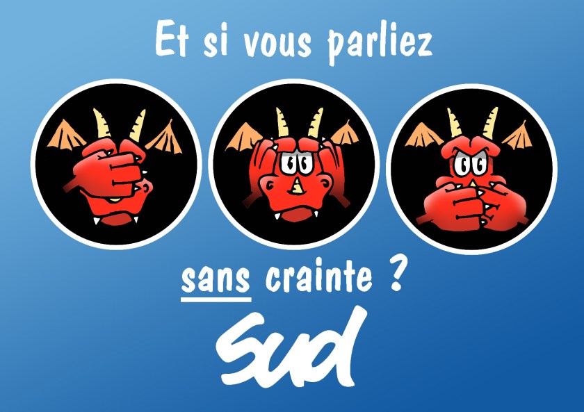 Évaluation, rémunération, formation, carrière, souffrance au travail, congés, mobilité, aide sociale, ou tout autre problème professionnel, Appelez-nous au 06 50 38 86 01‬ ou contactez-nous à : sud-regionpdl@protonmail.com